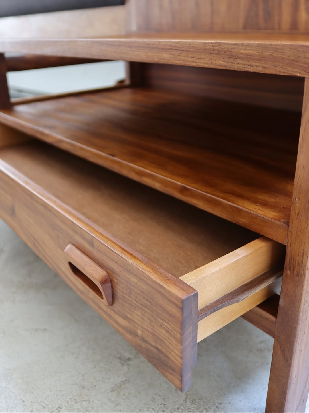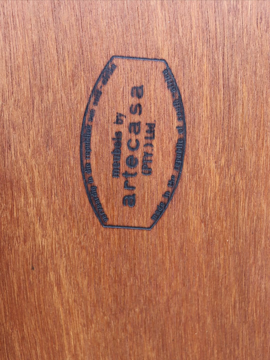 A stunning and rare Mid-Century solid kiaat bed base, headboard and pedestals by Artecasa, 1960’s. Fits a king extra length. Original attribution mark behind headboard fabric panel