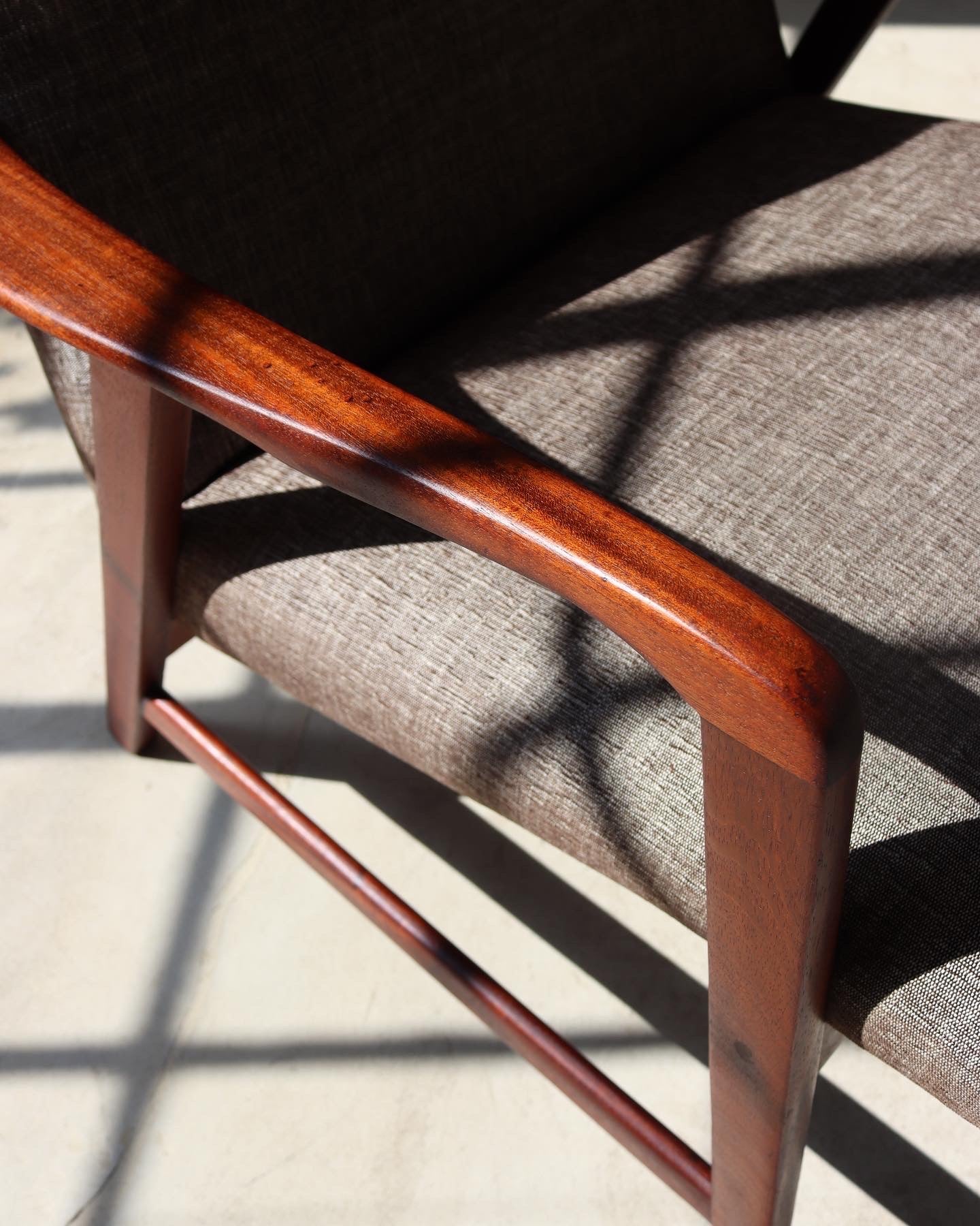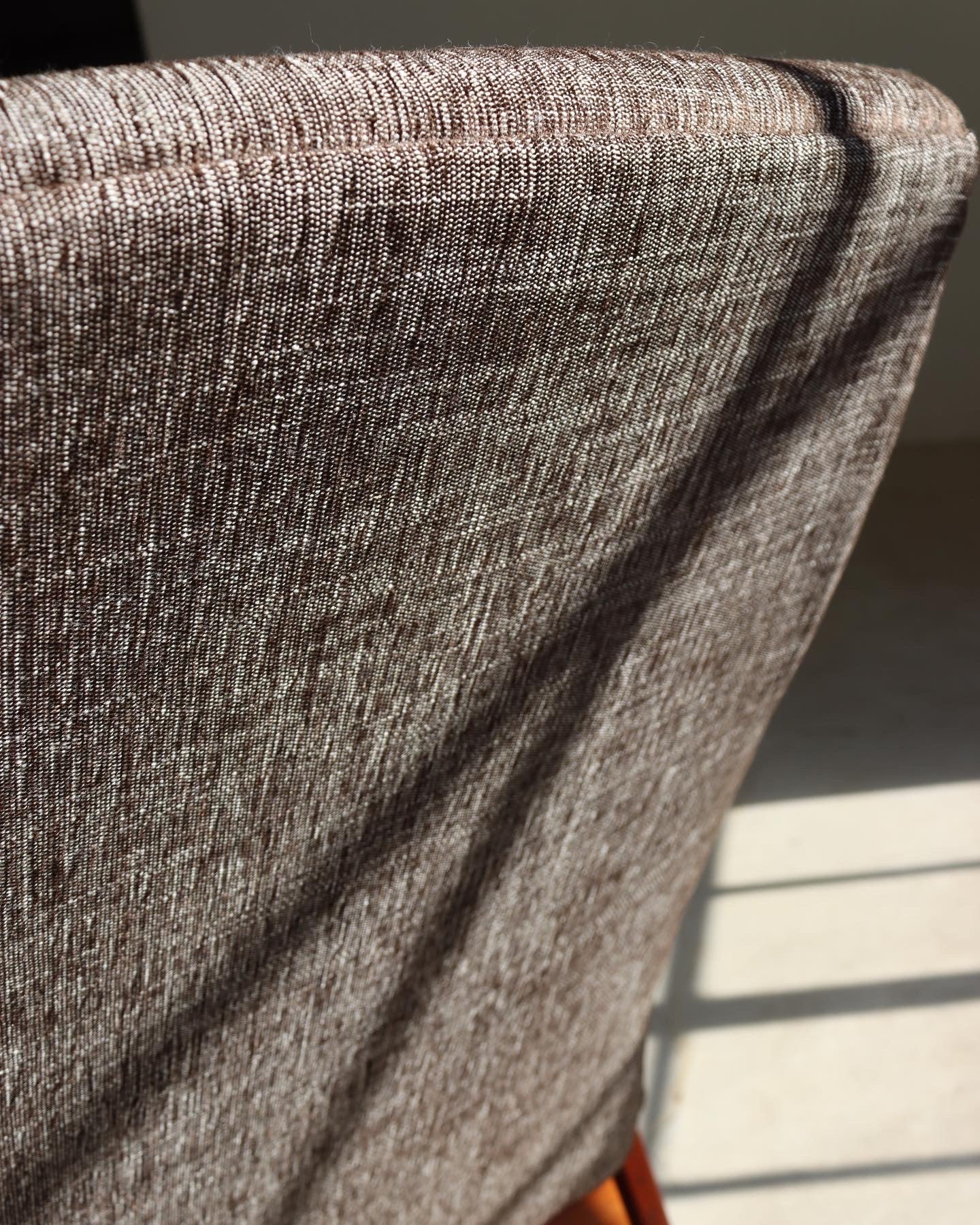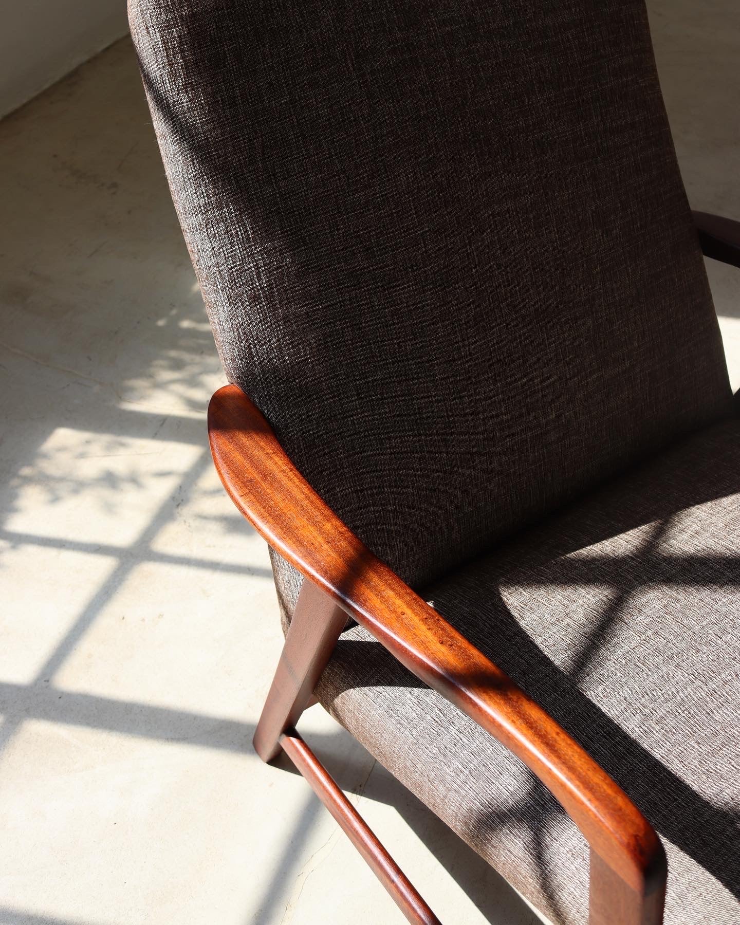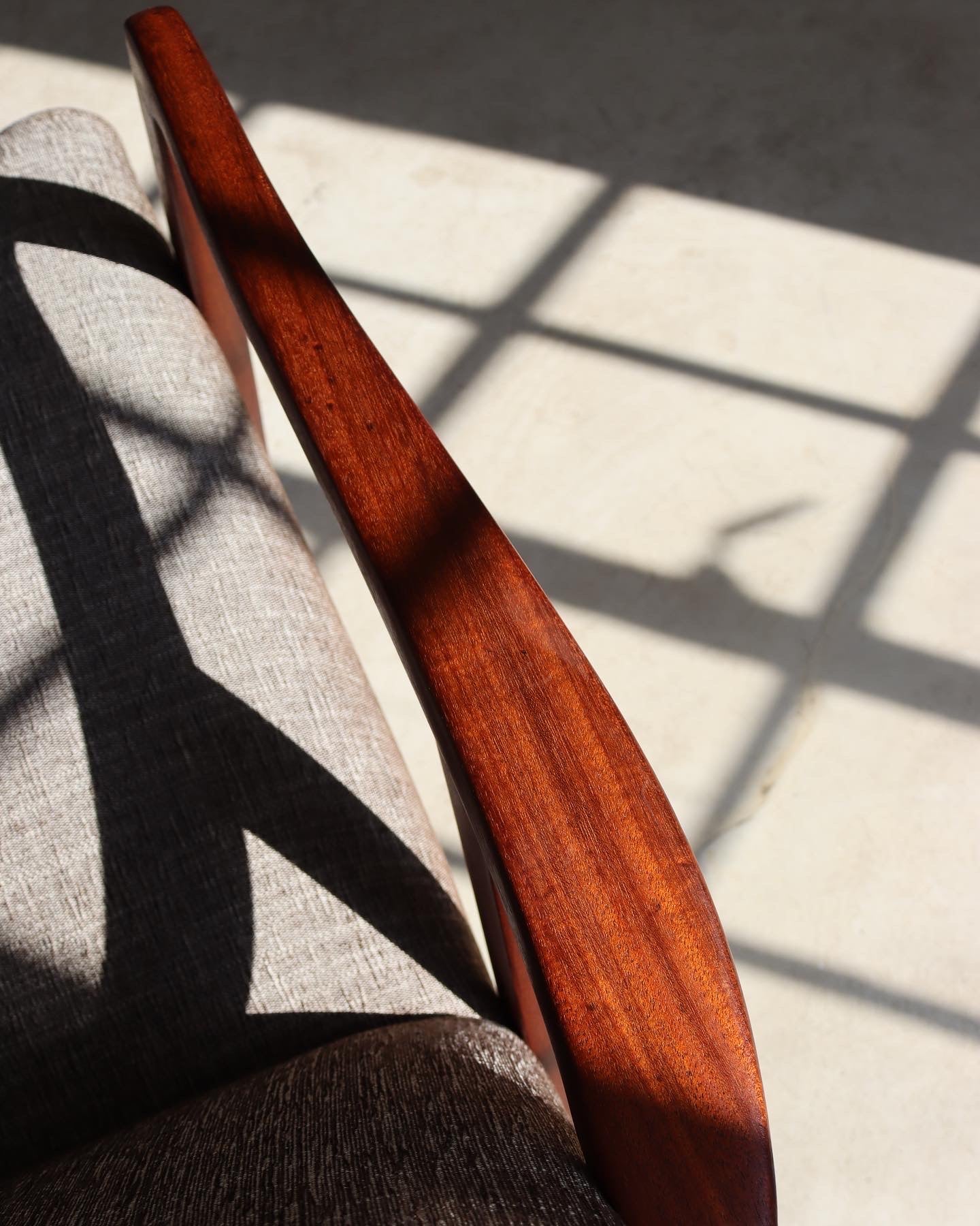 Wood has been restored and seats have been reupholstered in high quality locally made woven fabric with a rub count of 90 000
