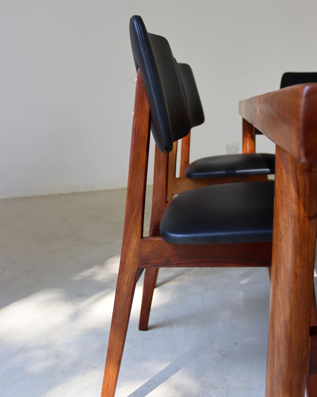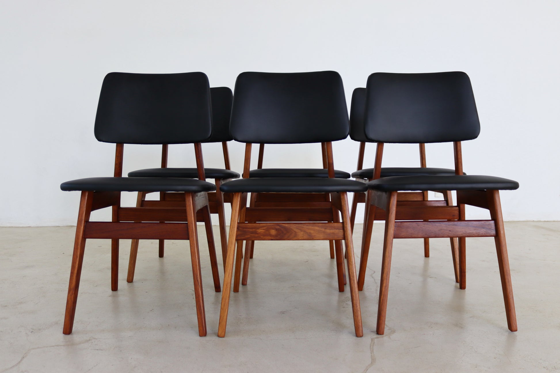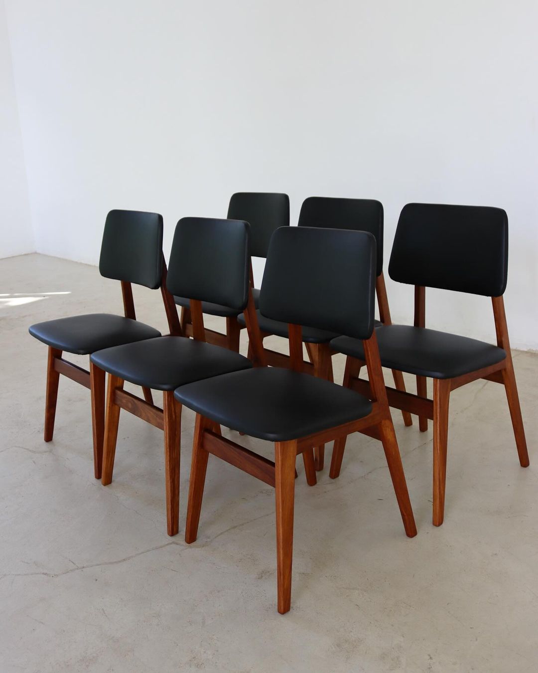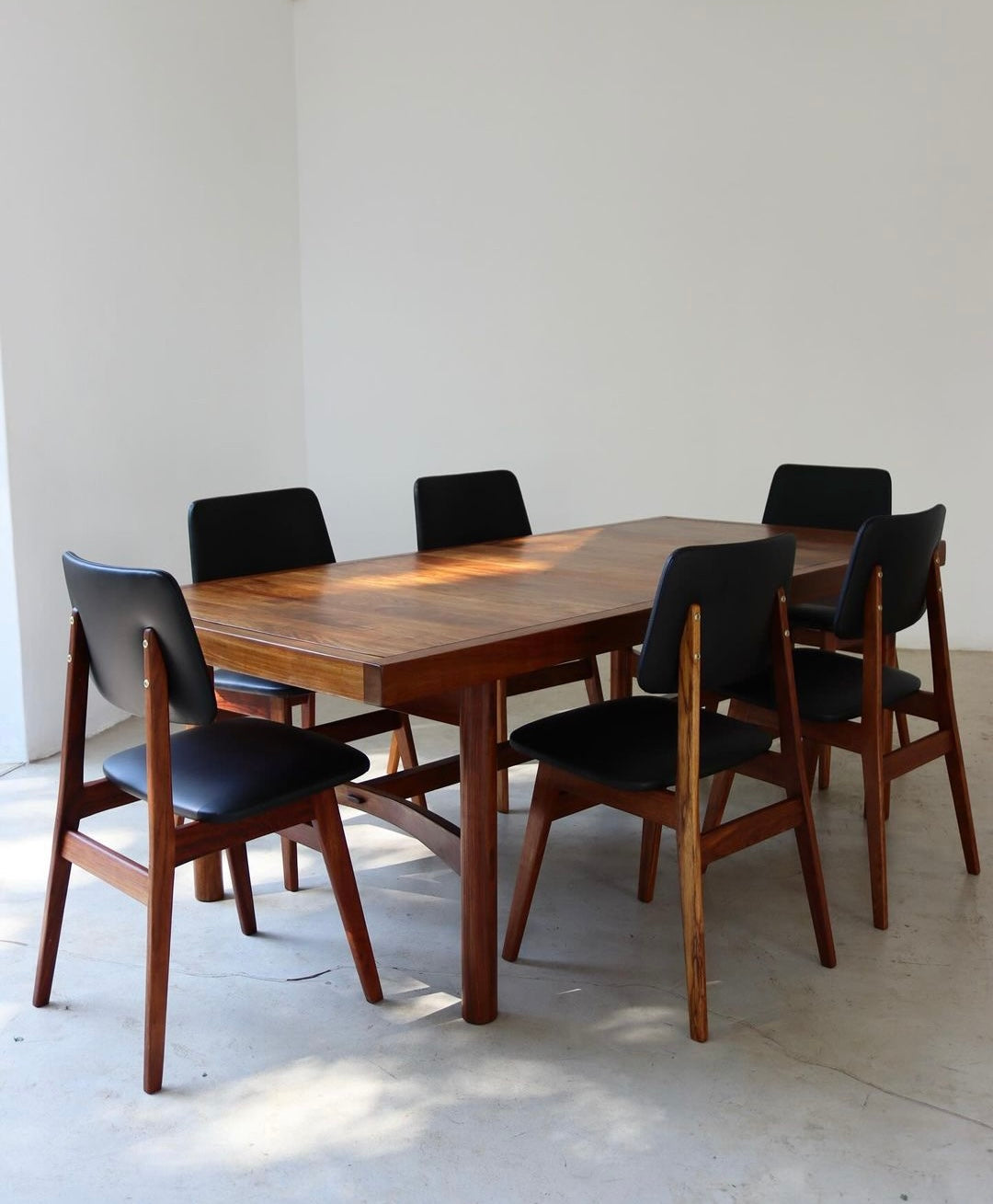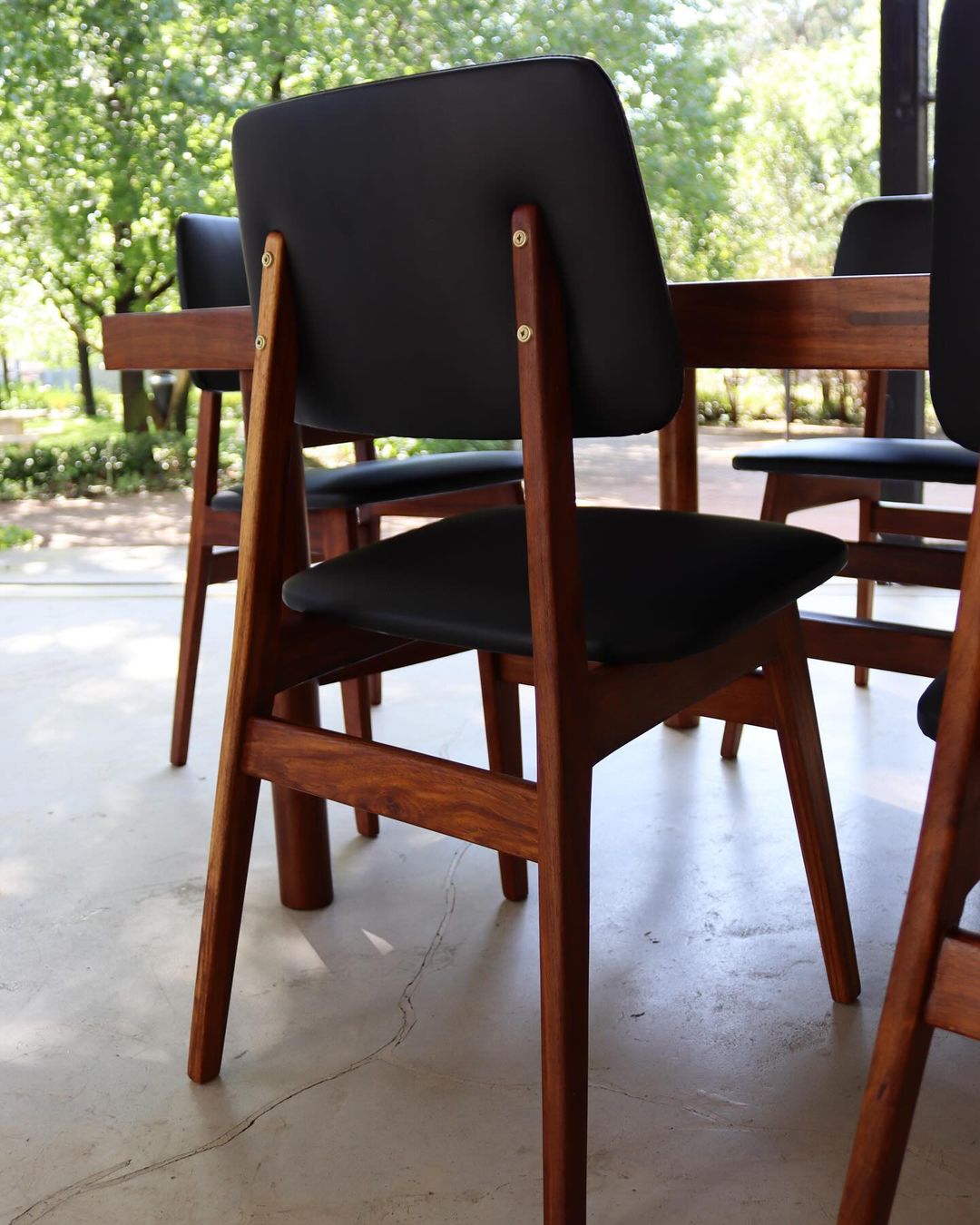 Beautifully crafted and stylish Mid-Century solid kiaat 6 seater dining room set consisting of 6 chairs and a table by Artecasa