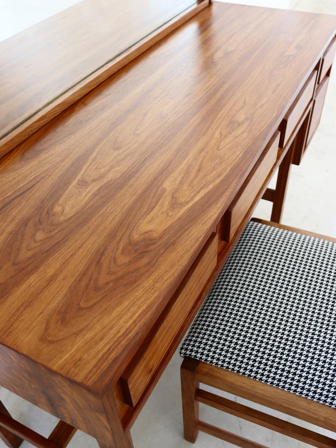 Mid-Century kiaat dressing table with 5 storage drawers and a matching stool by Novocraft, 1960’s