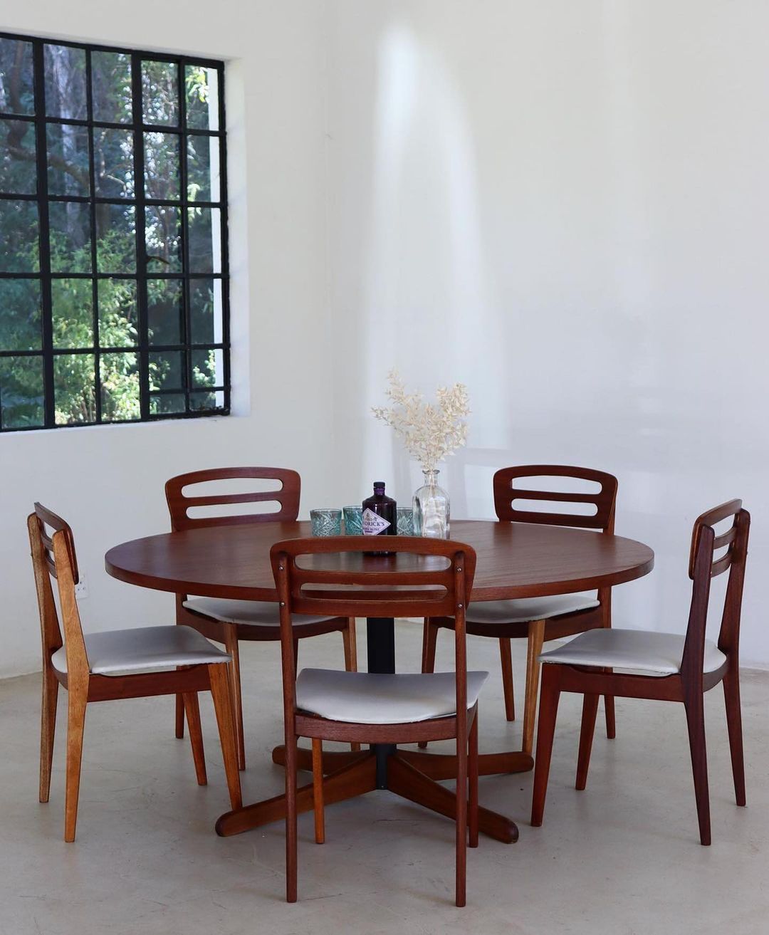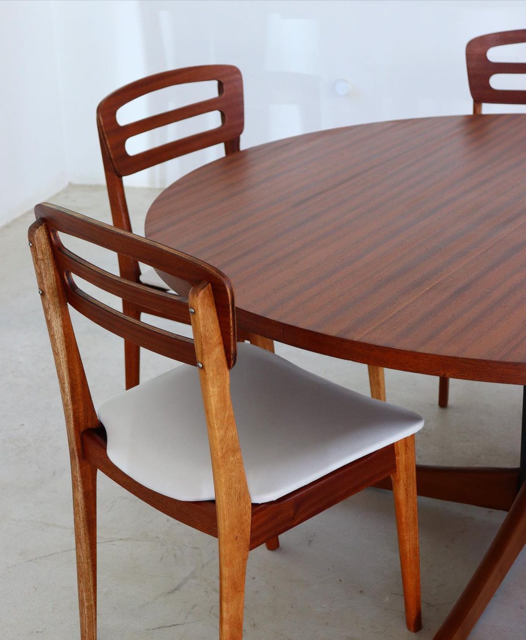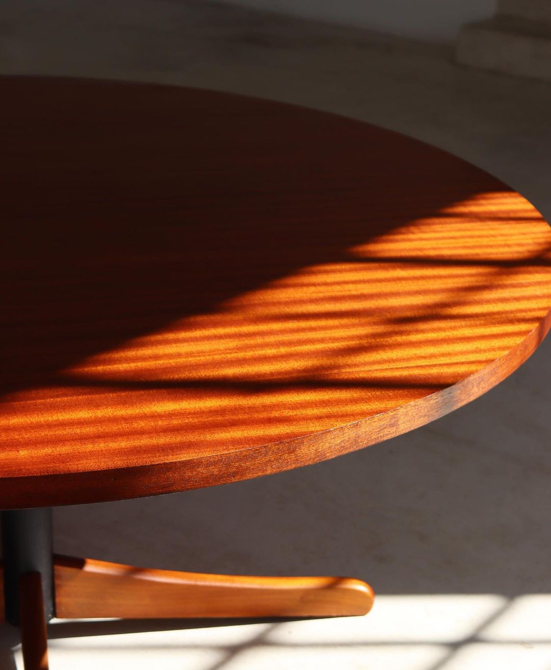 A stylish Midcentury Sapele Mahogany Frystark dining room table from their status range