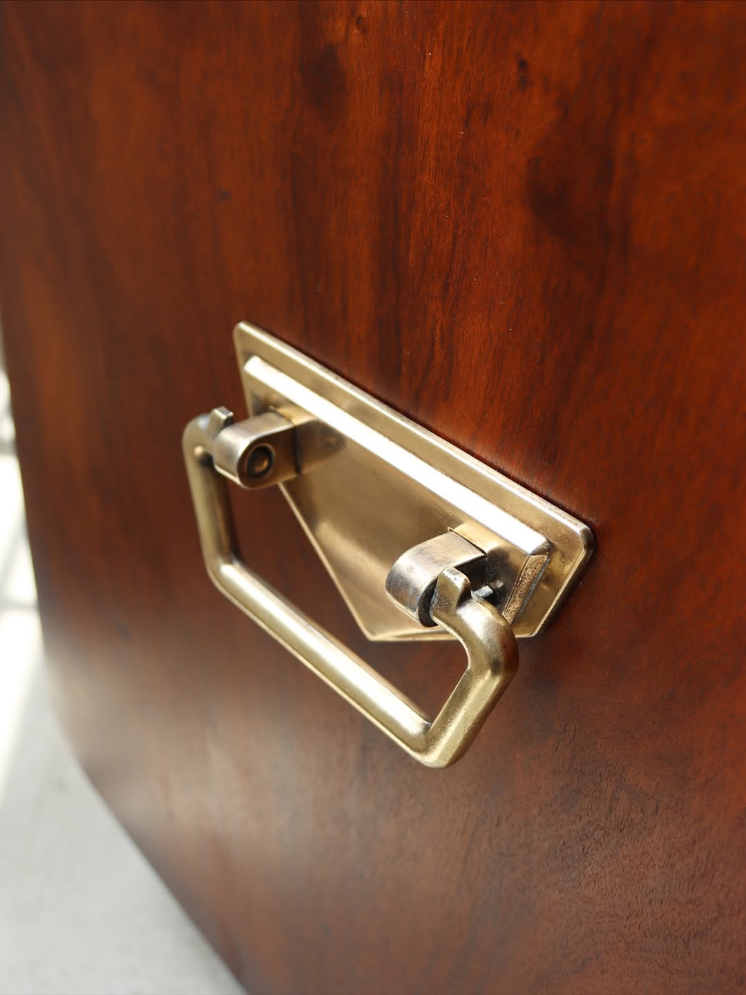 A beautifully crafted, unique and versatile kist/storage chest by Aristo Craft Furniture, 1960’s. This chest offers generous storage space in the adjustable & sliding storage compartments. Features solid brass handles, brass capped feet and original attribution mark